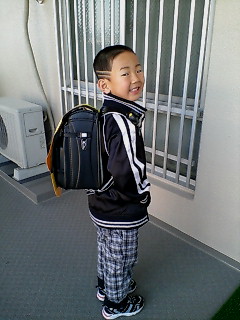 初めてのランドセルに朝からウキウキのカッチャンですがw教科書すべてを持って行かなきゃならず