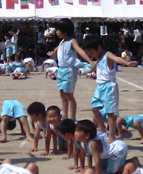 入場が終わるとらいおん組の組体操ヽ( ´ー`)ノ