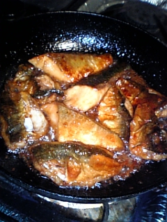今日はお父さんが帰ってきて昨日おじさんが釣って来た魚を