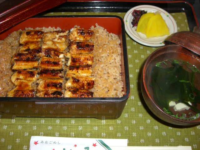 宮島名物「あなご飯」とフェリー乗り場にあったので
