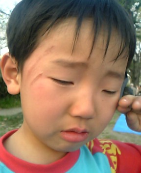 そしてカッチャンと遊ぶも、やりすぎて地面に突き倒す形になり(´Д`;)カッチャン負傷 。゚(゚´Д`゚)゜。ゴメンネwwwヨッパのかぁーちゃんが悪かった・・・il|li_| ̄V|○ il|liまさかこんなに擦り傷になろうとは( ▽|||)ま、男の子だし♪強い強いwww