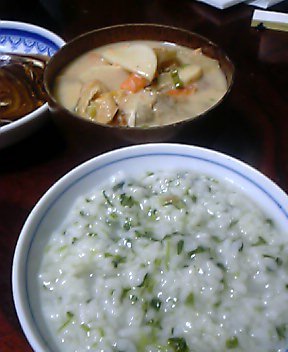 ・・・・七草粥&コロッケ&粕汁・・・・微妙(´-`)