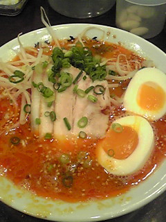 ピリ辛のラーメンで本日レディースDAYとかで半熟卵がタダ♪www