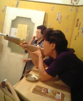 食後には射的でしょう(笑)懐かしい~(人´∀`).☆.。.:*・° と、真剣ですwwwちゃーんと当たってました(´-`)スゲwアタシもちゃんと当たったょ?wで、お腹もいっぱいになり商店街をブラブラしながら岐路へ~(´-`)その頃には足の裏が痛くて痛くて(´;ω;`)ミュールなんて履いて行かなきゃよかった( ▽|||)おかーさんもストレス発散出来たようで(´-`)今度は鶴橋~♪とか言ってるしね?wwま、そのうちwそれにしても疲れた~~w