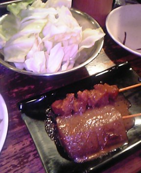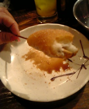 そしてやっぱり串かつ♪♪今日は季節物の はも を頂きました♪始めはやっぱどて焼き(人´∀`).☆.。.:*・° そして飲み物は ウーロンにオレンジジュース(笑)そう。おかーさんも飲めないんですwwwアタシも敢えて昼からは飲まないしね?wま、食事がおいしけりゃいいんです(`・ω・´)v