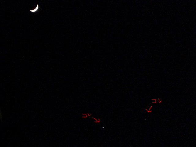 月の少し下に金星と水星?が