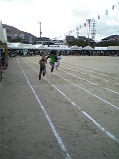 朝一から徒競走と男子100M走を元気に走るw