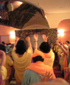 特殊な炉で800度に熱した鉱石から遠赤外線が出て体に良いらしく皆でその遠赤外線を浴びる図www