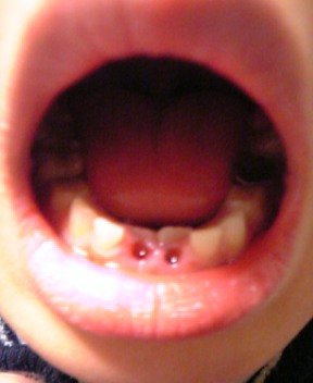 下の前歯が生えてきてるのに乳歯が抜けないw