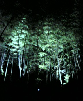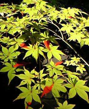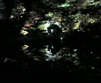 上の写真は高台寺のお庭にある池に木々を映してある水面鏡