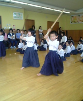 保育園児でも剣道着で竹刀を持って素ぶりw