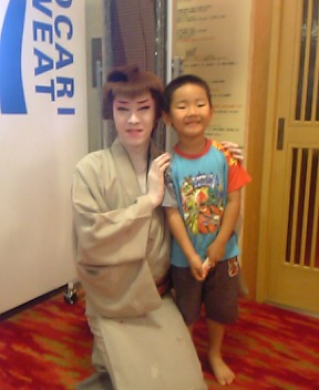 終わって出口へ向かうと役者の皆様がお出迎え(*´∀`*)カッチャンはカッコイイ♪と皆に握手をしてもらい写真も撮らせていただきw座長さんにか「あの刀ホンマに切れるの???」座「ハハ。切れへんよぉ~~(笑)偽物やから(´-`)」と目をキラキラさせて聞いたカッチャンに素で答えて頂きましたwwwしかし座長と副座長は京本政樹風でカコイイ(人´∀`).☆.。.:*・° まぁ舞台化粧だからだけどね?w副座長の女形はすごぉーく綺麗でした^^たまにはこんなのもいいなぁ~と思える一日となり帰りはあまりに疲れていたので堺から京都南まで高速♪1時間半かからずに帰れましたw帰り際に「女風呂でご迷惑をおかけしましたので」と次回の割引券をもらったのですが・・・んーまぁたまーーーーーにはええけどね?そんなすぐには行かないょ?って感じかな(笑)楽しい一日だったようでアタシの作戦も大成功♪♪カッチャンも機嫌よくお泊り行って来ていいよ~と言ってくれました(笑)(´0ノ`*)オーホッホッホ!!(´-`)ゲフゲフ