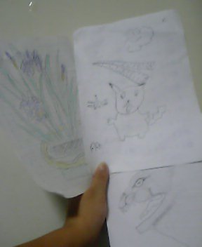 そして晩御飯も頂きwこれがまたすごい量( ▽|||)お好み焼きだったんだけど、こんなボールみたことないしね?www一体何枚焼かなきゃいけないの?みたいな(;・∀・)カレー風味でとってもおいしかった♪♪団欒して椅子に座っていると・・・姐んちの息子2番が・・・②「うわぁ~椅子から肉はみ出てるぅー(´-`)」ヒ「Σ(゚Д゚;≡;゚д゚)!!! (゚Д゚)ゴルァ!!ウッサイ!!!バキッ!!( -_-)=○☆)>_<)アウッ!」(しばいたしね?wwwそこから2・3・4番に プヨプヨ星人だの何だの・・・il|li_| ̄V|○ il|liイジメです 。゚(゚´Д`゚)゜。まぁ当たってるので何も言えなかったわけですが・・・(´-`)でも追い掛け回して、しばき回しときました(*´∀`*)痩せるもん!!! 。゚(゚´Д`゚)゜。そんなこんなでワイワイガヤガヤほんっと騒がしくしたにも関わらずw今日も泊まり~~~♪と言ってくれる姐んちの息子達♪ありがたいのだけど(´-`)用事もないんだけど(´-`)GWで明日の昼や夕方に帰るのが怖くてね?www夜のうちに帰らせて頂きます(´-`)と言うことで帰ることにw帰る時に2・3・4番がカッチャンにいろんな絵を描いてはプレゼントしてくれるんです(笑)