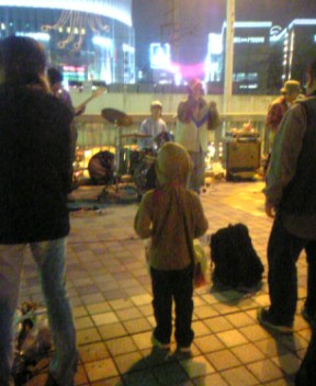 こんなことして飲めるようになってるんです(´-`)次は獲物を連れて行こう(´-`).。oO ぇそして帰り際に梅田の歩道橋で爆音がしてライブしてたの。まっすぐ行けば横断歩道渡って帰れるのょ。なのに音に釣られて「見たいぃぃ~~!」ε-(ーдー)ハァ・・・行ったが最後・・・_| ̄V|○気に入ってしまってそれはそれは夢中で見てたw結局休憩になるまで3曲♪(´;∀;)
