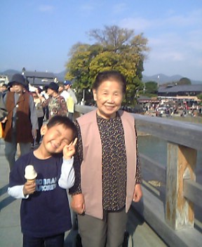 まず駐車場横に梅宮辰夫の漬物店wお約束の写真(笑)定番の渡月橋を渡り、川原へ下りてお弁当♪ひぃばあちゃんの、かやくご飯ヽ( ´ー`)ノ今回は栗とサツマイモが入ってた♪( ゚Д゚)ウマー