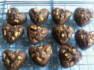 濃厚なチョコレート生地の中に香ばしいクルミを閉じ込めました。すっきりとした甘さです。