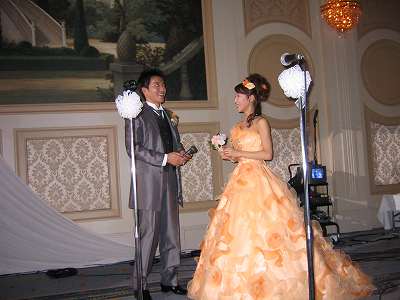 新婦は、私達が余興をやっている方に来てもらい、