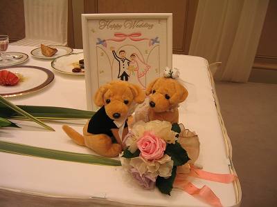 その時完成したブーケ。ウエルカムドッグ&ボードと共に・・・