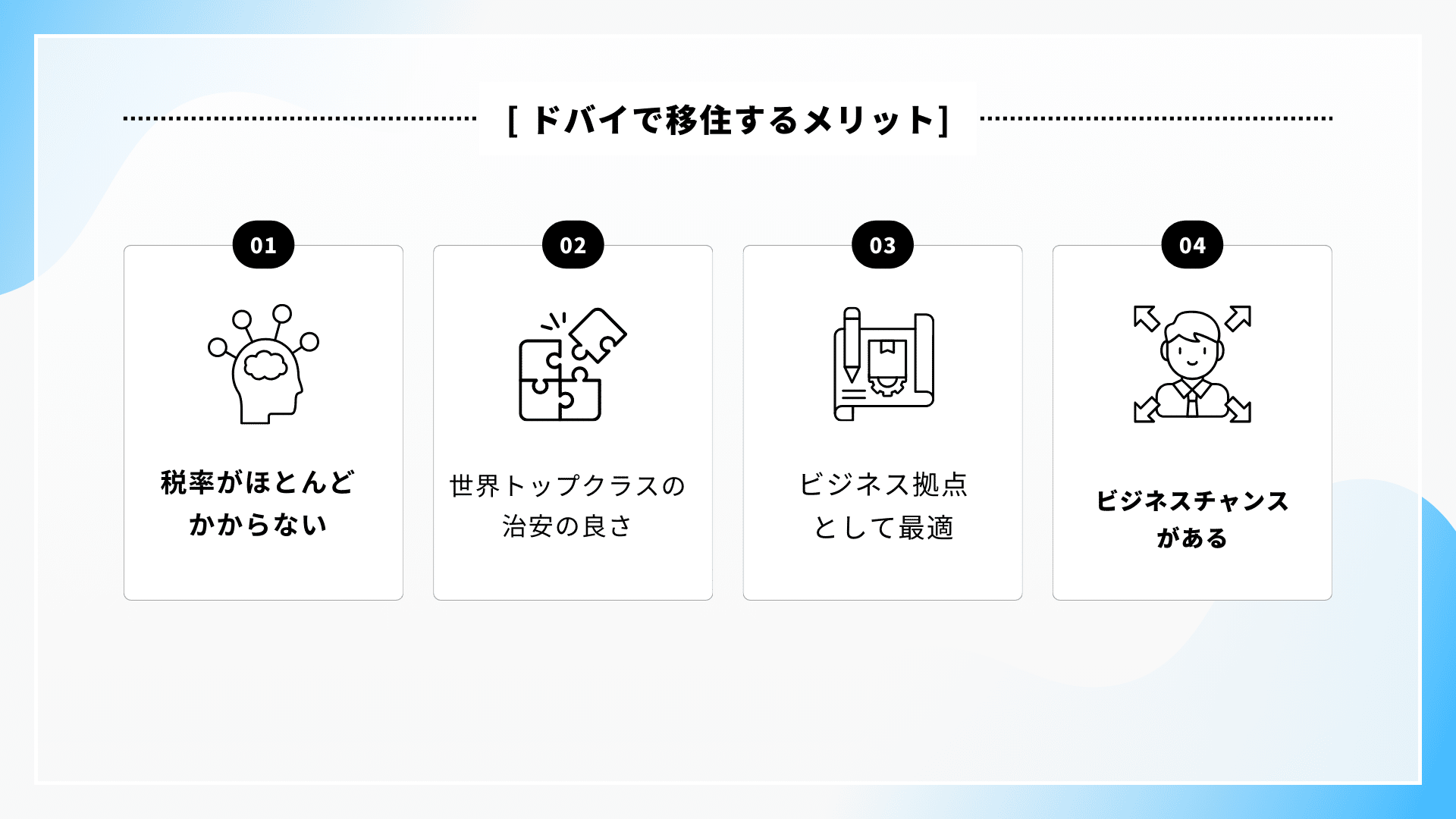 海外で会社を作るなんて、英語もできないし難しそうと思うかもしれませんが、実はドバイは世界中から人が集まる都市なので、手続きのシステムが非常にシンプルです。さらに、最近では日本人の移住をサポートする専門のエージェントも増えており、日本語だけで設立から銀行口座開設まで完結できる環境が整っています。