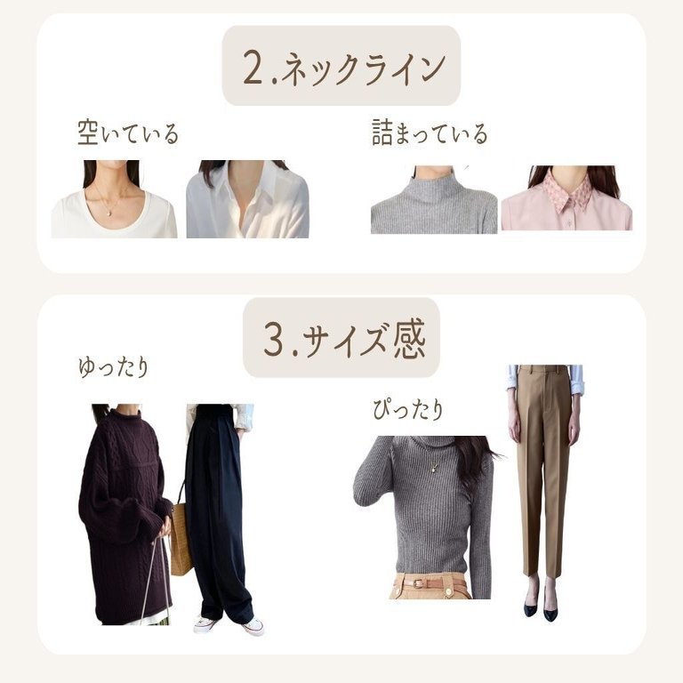 ・似合う服の素材、丈感、形が分かる