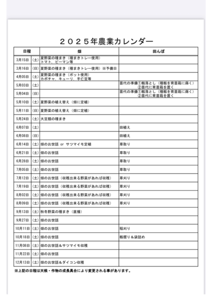 2025年農業カレンダーに沿って 作業進めていきます