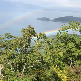 空奏テラスより琵琶湖を眺め虹を見た