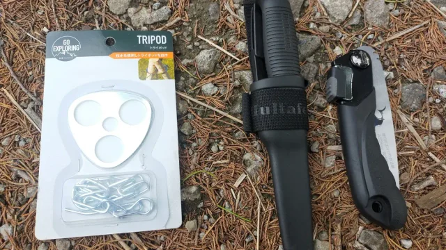 セリアのトライポッド金具を利用すれば、初心者の方でも簡単にブッシュクラフト気分を楽しむことができます。