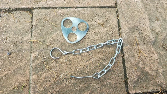 箱から出したトライポッド金具は、穴が開いたパーツとチェーンパーツの2つに分かれています。