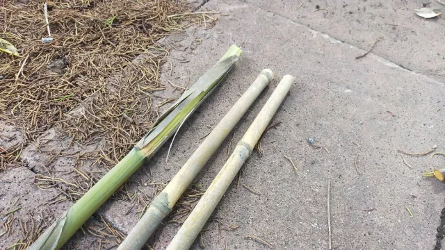 枝のかわりに、細めの竹でも代用できます。今回のDIYではまっすぐな枝が用意できなかったので、著者は竹を利用しました。