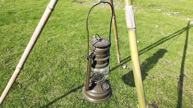 トライポッドは焚き火調理だけでなく、ランタンを吊るす3脚としても利用できます!