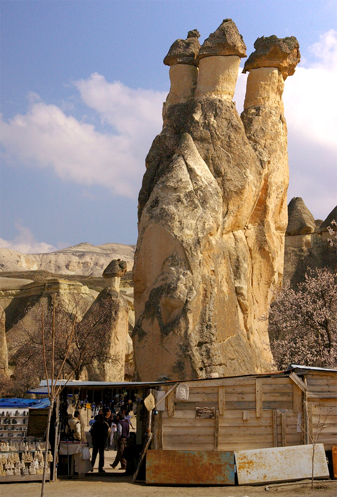 3世紀半ば、ローマ帝国の弾圧を逃れたキリスト教徒が、この地に移り住み、軟らかい岩をくりぬいて住居や教会を作った。