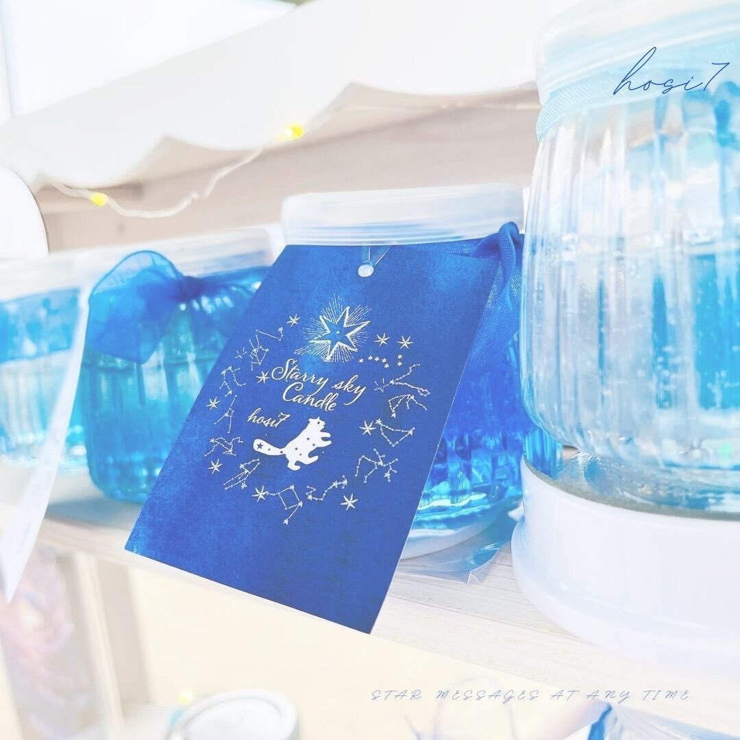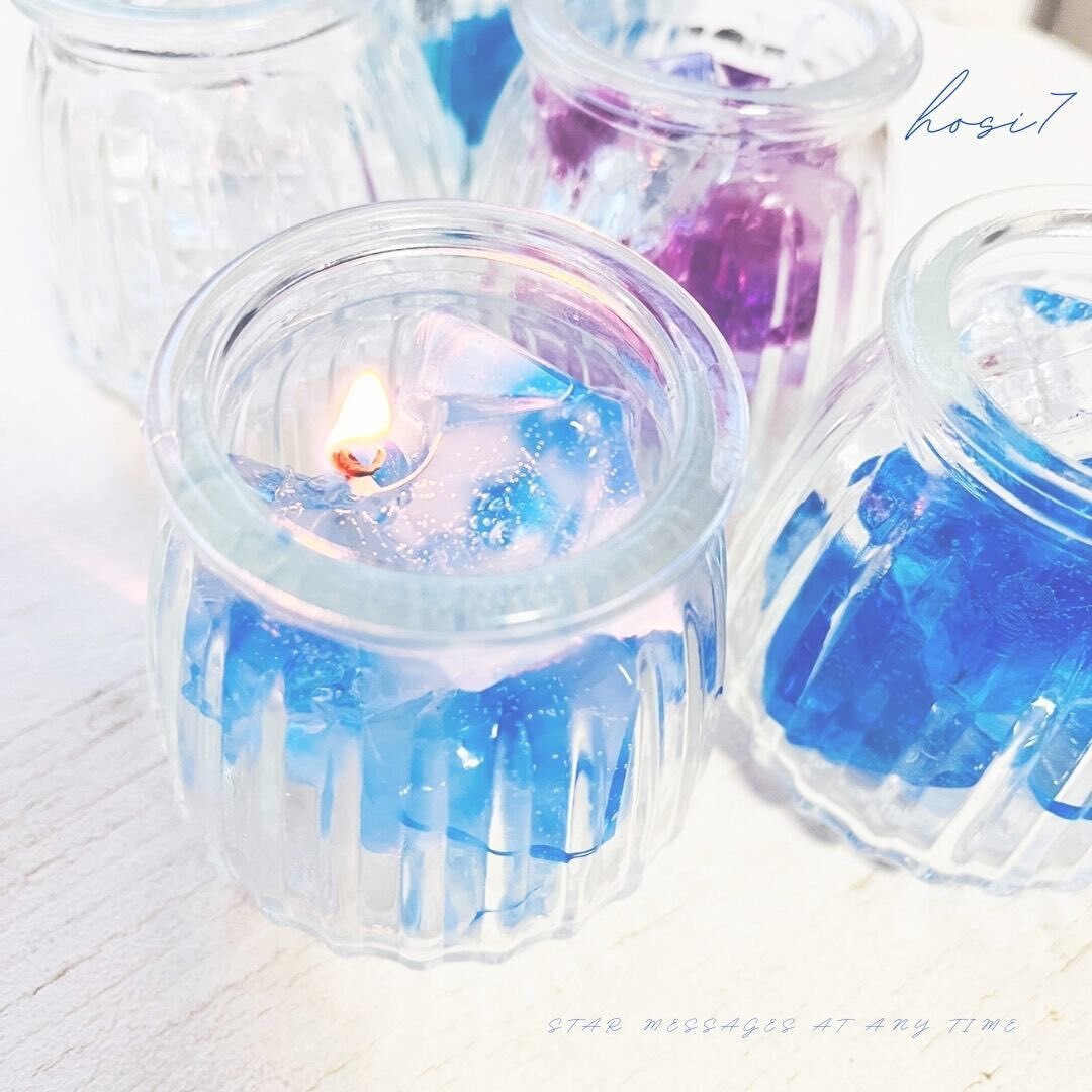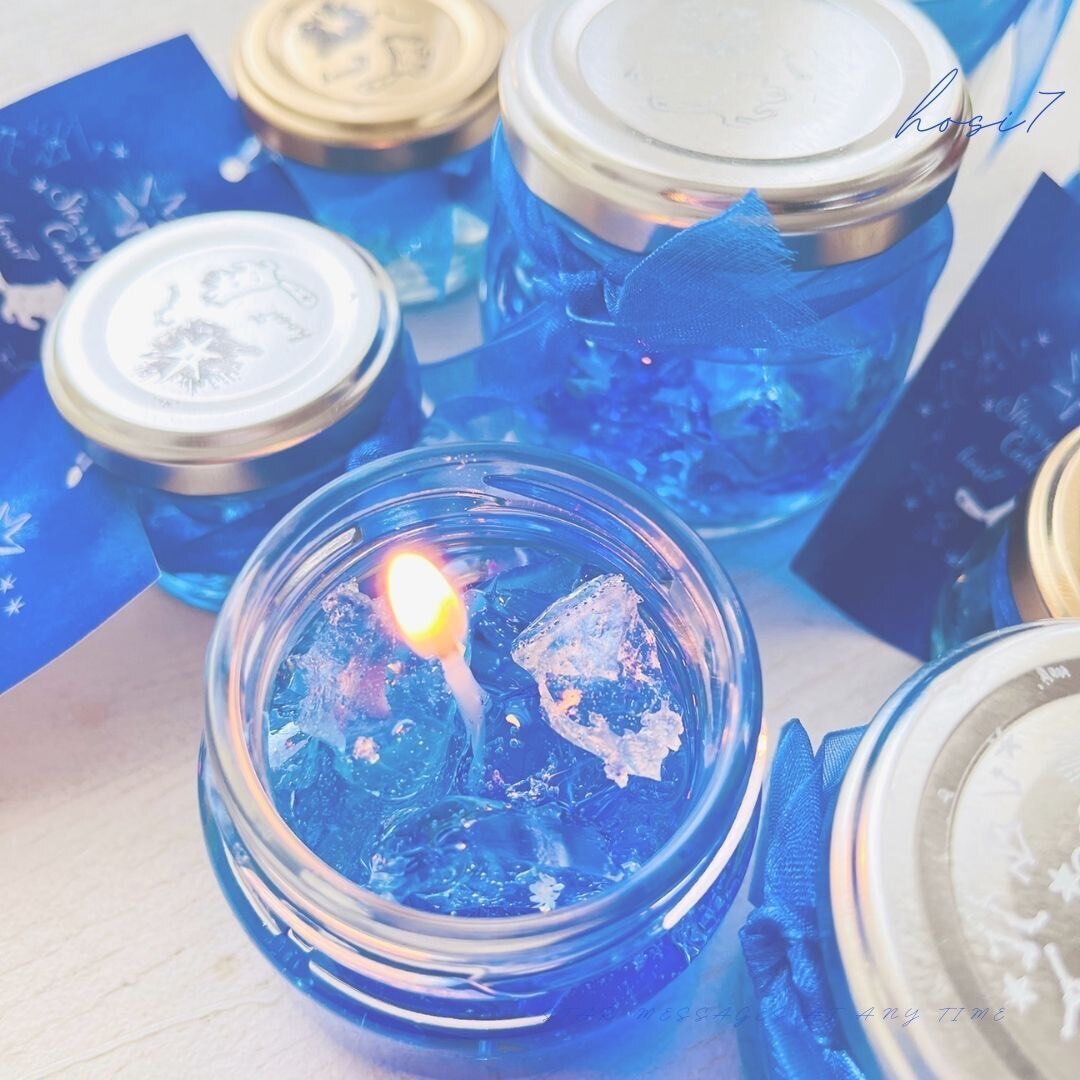 スターキャンドルは、波型のガラスの瓶の中に星型やダイヤ型のキャンドル入っていて