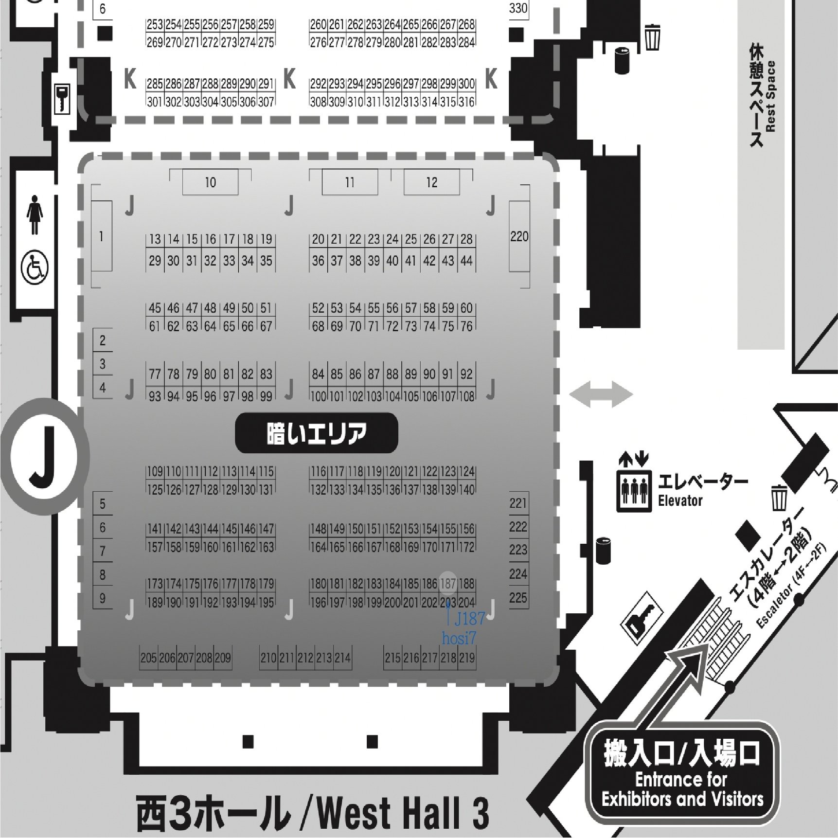今回のhosi7ブースは、西館4階の暗いエリアの2日間の出店です。