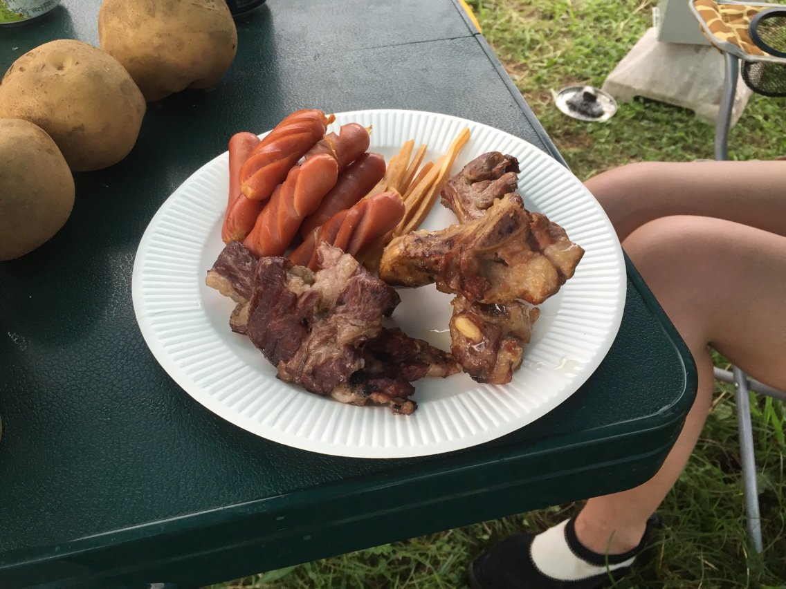 熱中症になったようで、、、タープとテント1基建てた後、1時間ほど水片手にへたり込んでおりました(;´・ω・)