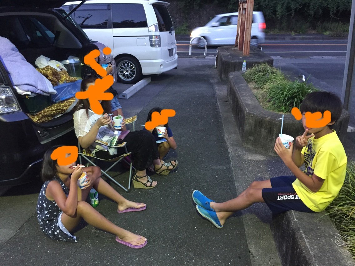 19時温泉を出てて帰る頃、、、子供達「お腹が空いた!×4」