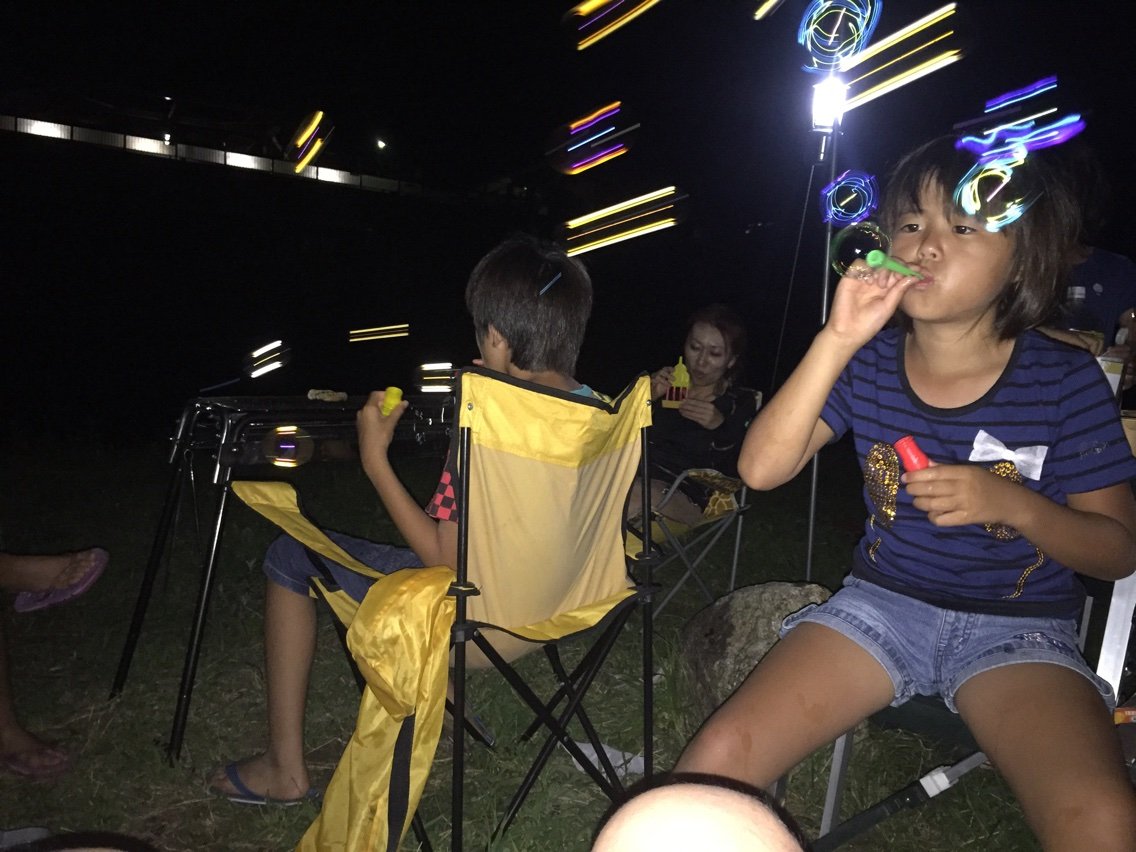夜はまたみんなのテンションが上がってきて、なぜかシャボン玉大会"(-""-;A ...アセアセ"