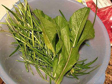 からし菜(確か・・・^^;)は炒めてからお味噌汁に。