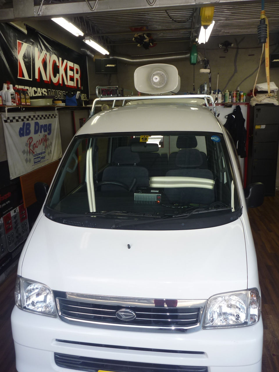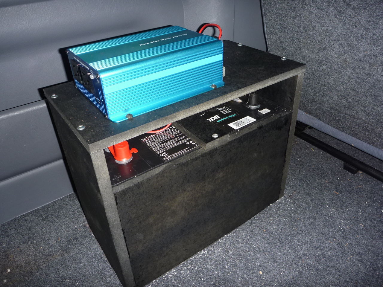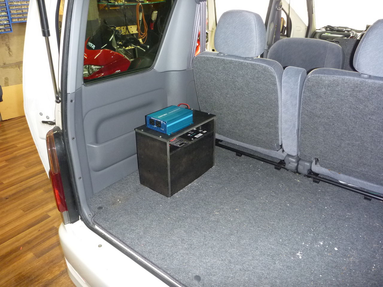 屋根に付ける後者の名前が書いてある看板を内側から光らせて暗くてもよく見えるようにする為,12V(+)の車から,安定した100Vに変換する事と,サブバッテリーを搭載する事でっす。