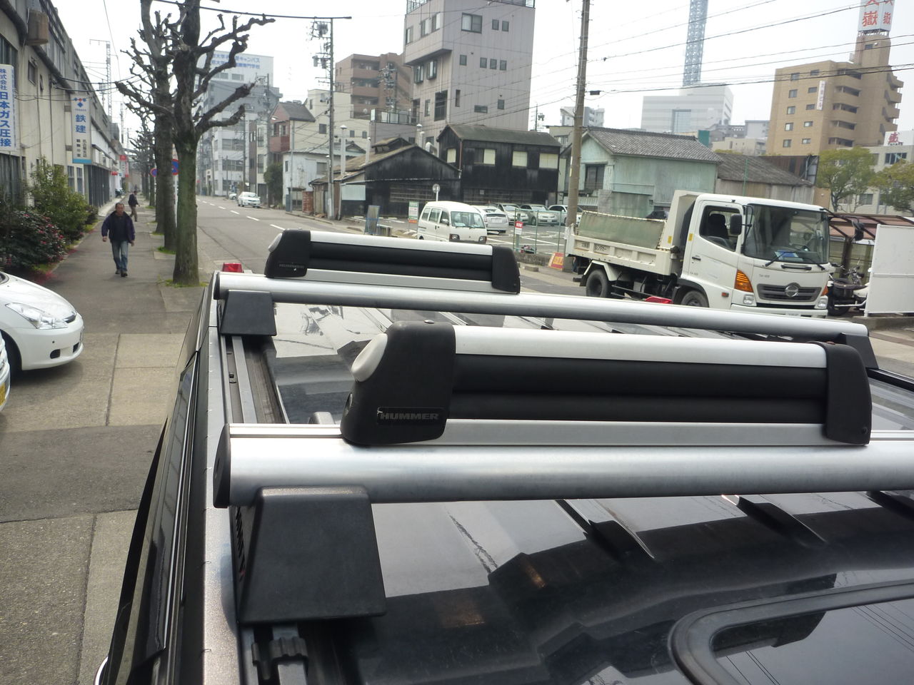 ハマーのルーフキャリアバーは特殊な形をしており,専用品でないと取り付ける事ができません。