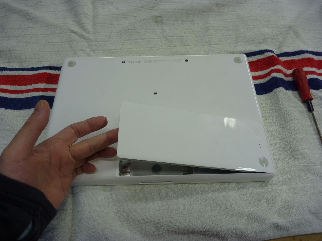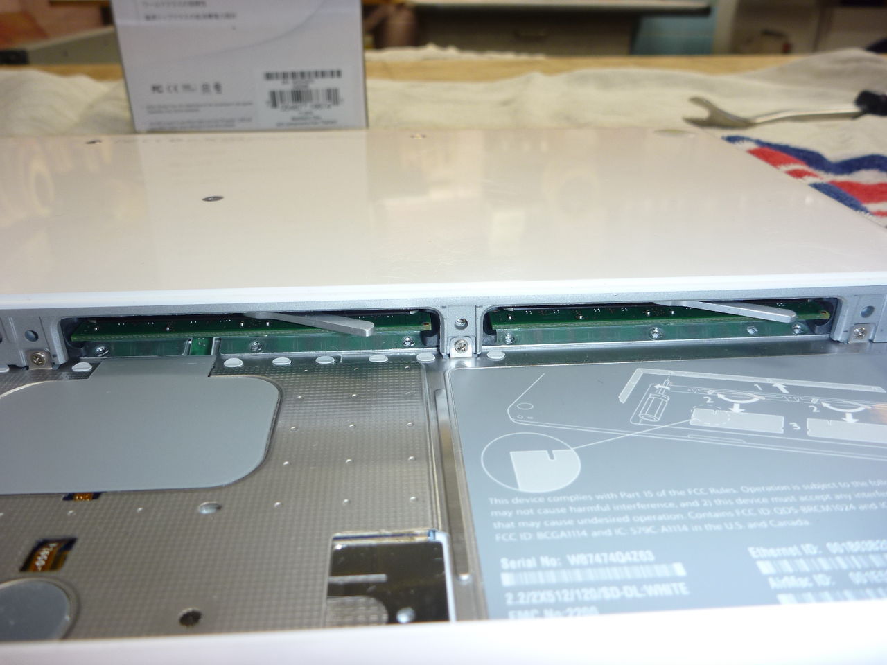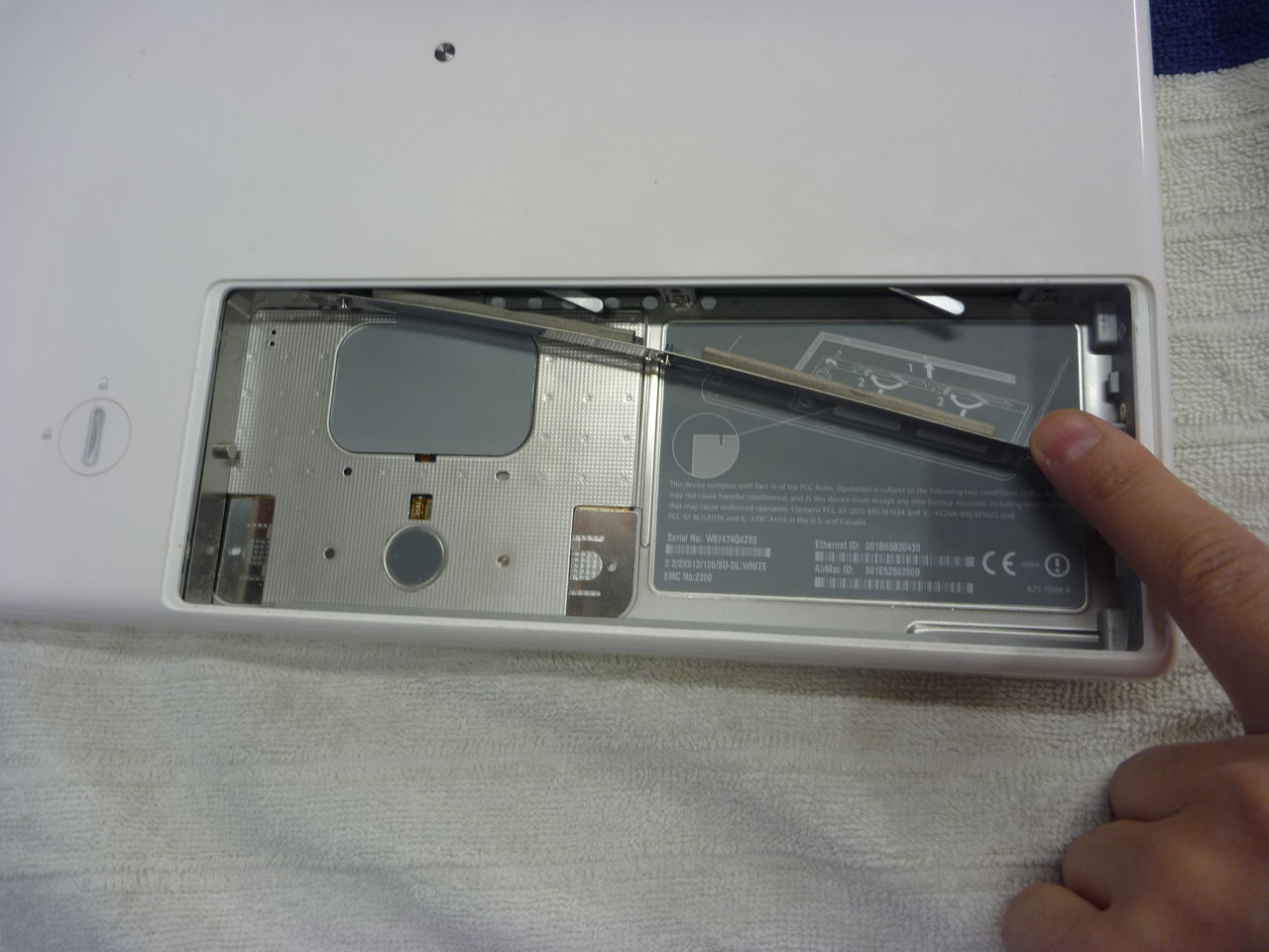 そしてメモリースロットとハードディスクの金属のふたをはずします。