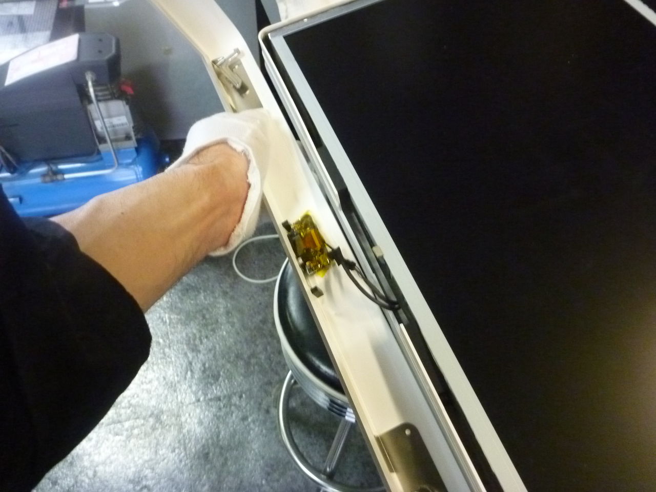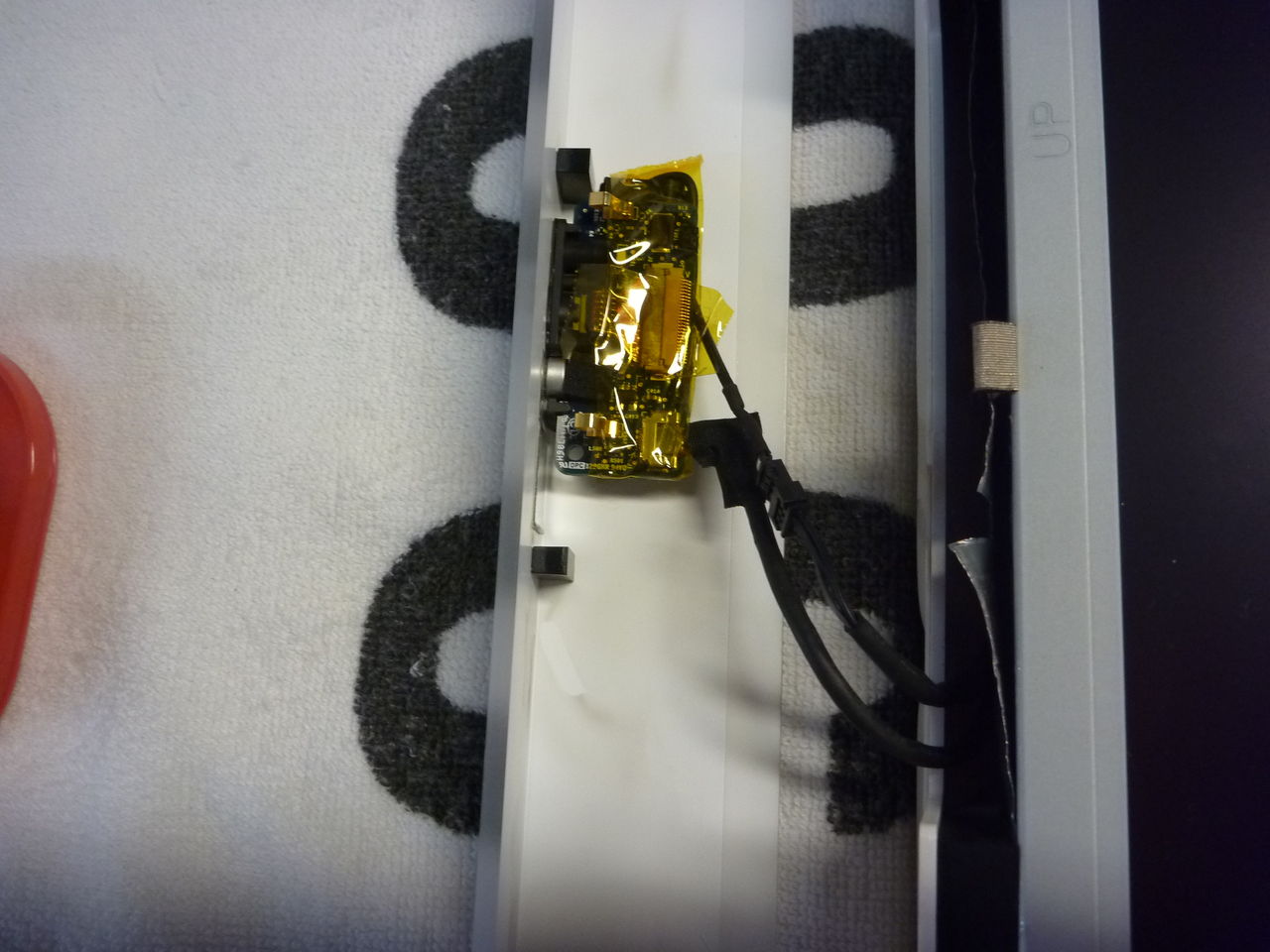 最大の難関だったのは,液晶の周りに貼ってあるアルミテープをカットする事でした。