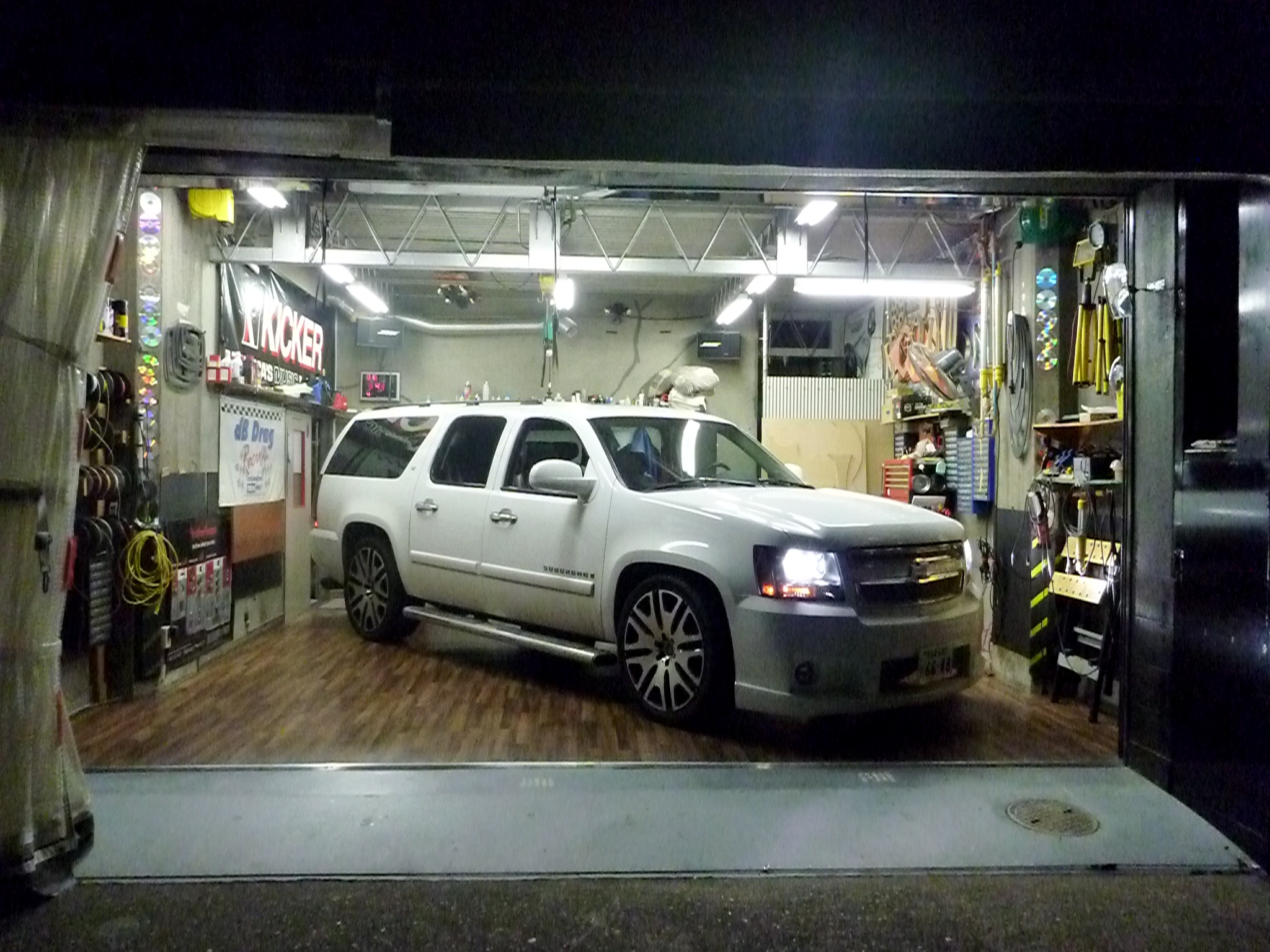 仕事でもこの車両に荷物を満載されるオーナーの意向にあわせて,リアのラゲッジはフルフラットに仕上げました。