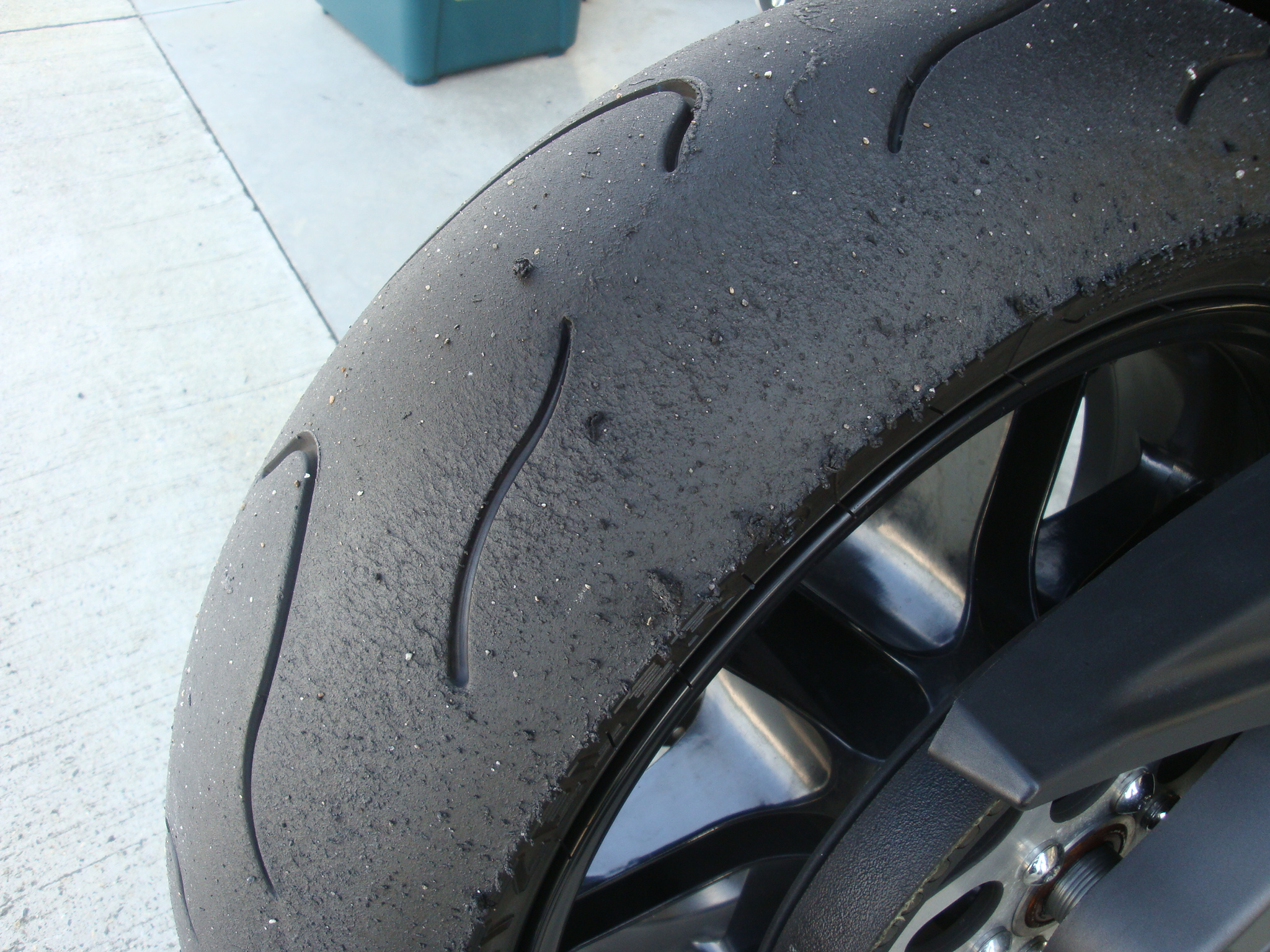 楽しく走り回ってたら、買ったばっかりのタイヤがこうなっちゃいました・・・。