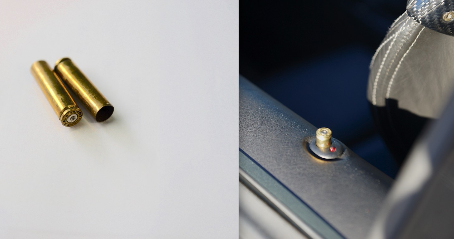 ついでに、ピストルの空薬莢を利用したドアロックノブを加工取り付けいたしました。
