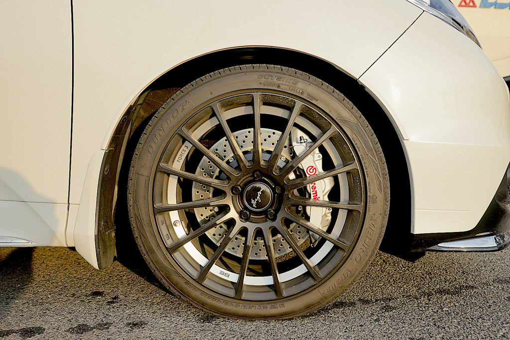 新型オデッセイにbrembo6pキャリパーと355φ2ピースディスクをセミフローティングマウントにて装着いたしました。