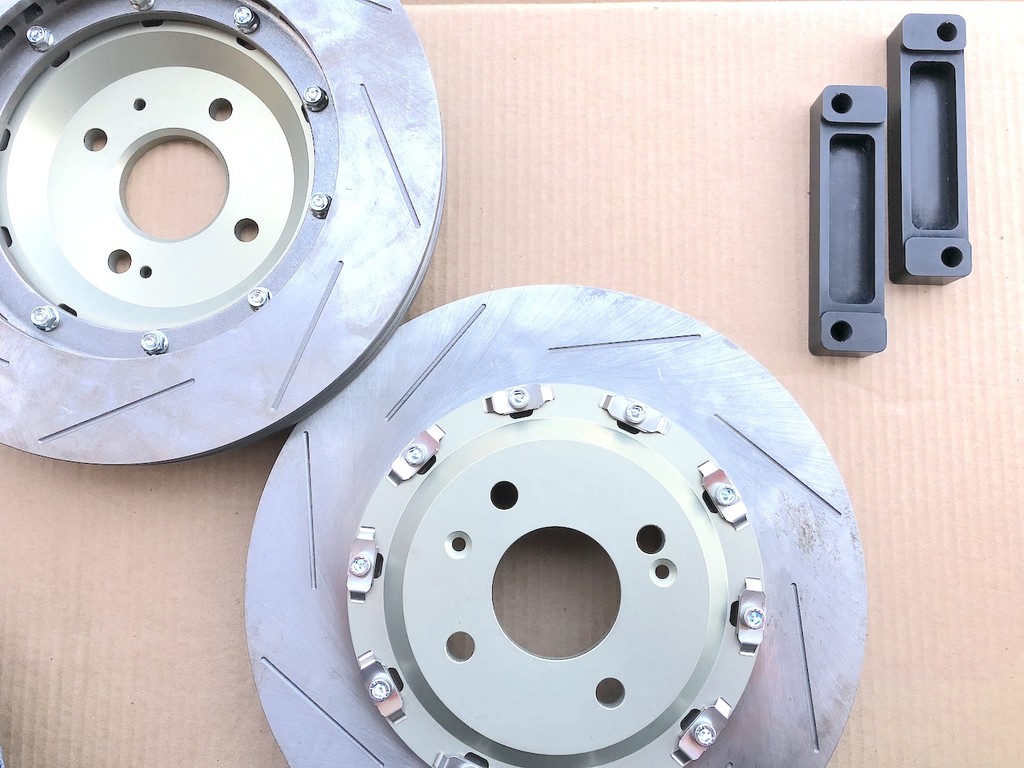 ワンオフブレンボブレーキシステムアップグレードキット製作 以前にワンオフでブレーキシステムを製作させていただきましたお客様よりディスクのサイズUPをご依頼頂きました。 今回は、ディスクもワンオフ製作にてご希望のサイズに合わせてアップグレードキットの製作です。