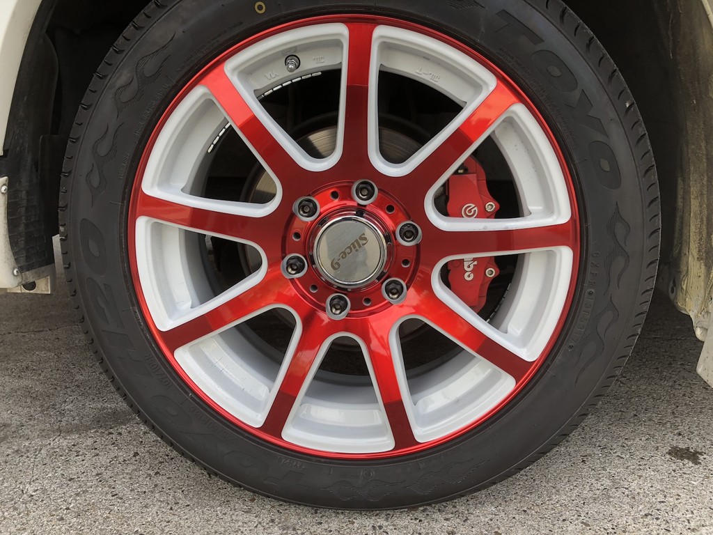 200系ハイエース スーパーGL 4WDにブレンボブレーキシステム装着200系ハイエースにブレンボブレーキシステム装着です。 今回は、18インチホイールに合わせて、特別カラーイエローの6ピストンモノブロックキャリパーに355φ2ピースディスク ドリルドタイプをチョイスです。 元は、危険な偽キャリパーカバー でしたので、大幅な性能UPになります。 こちらは交換前のノーマル そしてこちらは、正規ブレンボに交換 80kmからのハーフブレーキング動画(あえて手放しブレーキングをしています)若干荒れた路面でもご覧のようにほぼまっすぐに、余裕を持って停車可能です。