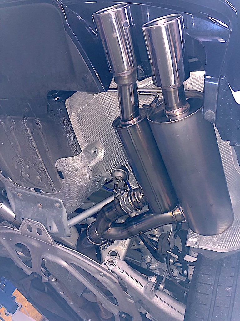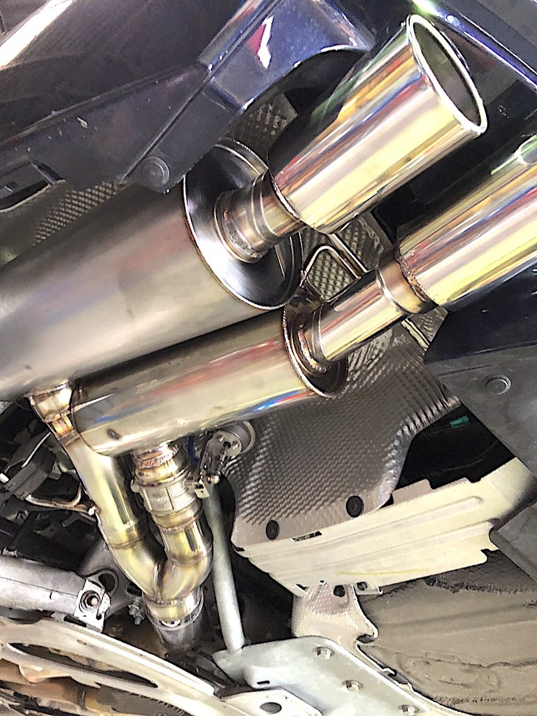 BMW M6 F12ワンオフマフラー BMW M6のノーマルマフラーがうるさすぎて近所から苦情が来ると言うので、日常域での音量を徹底的に下げて欲しいとのご要望です。 この車、確かに冷間始動時の数十秒間はターボのわりに非常にうるさいです。 しかも音質も悪く耳障り これをなんとかしなくてはならないので、通常の方法では難しいと思われます。 案の定、一回目は、あまりノーマルと変わらず・・ バルブの位置など変更 耳障りな音質も良くなり、かなり静かにはなりましたが、まだまだダメそうな雰囲気 また、改良の余地ありです。