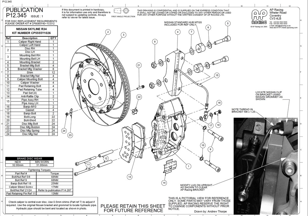 この車両は、2トンを優に超える車両ですので、ディスクも通常のレース用では無く、パッドのあたりはばも広く、ディスク厚も+2mmでフローティングボビンもヘビーデューティータイプになりますので、特にブレーキ負荷の高い車両には最適な構成にしております。