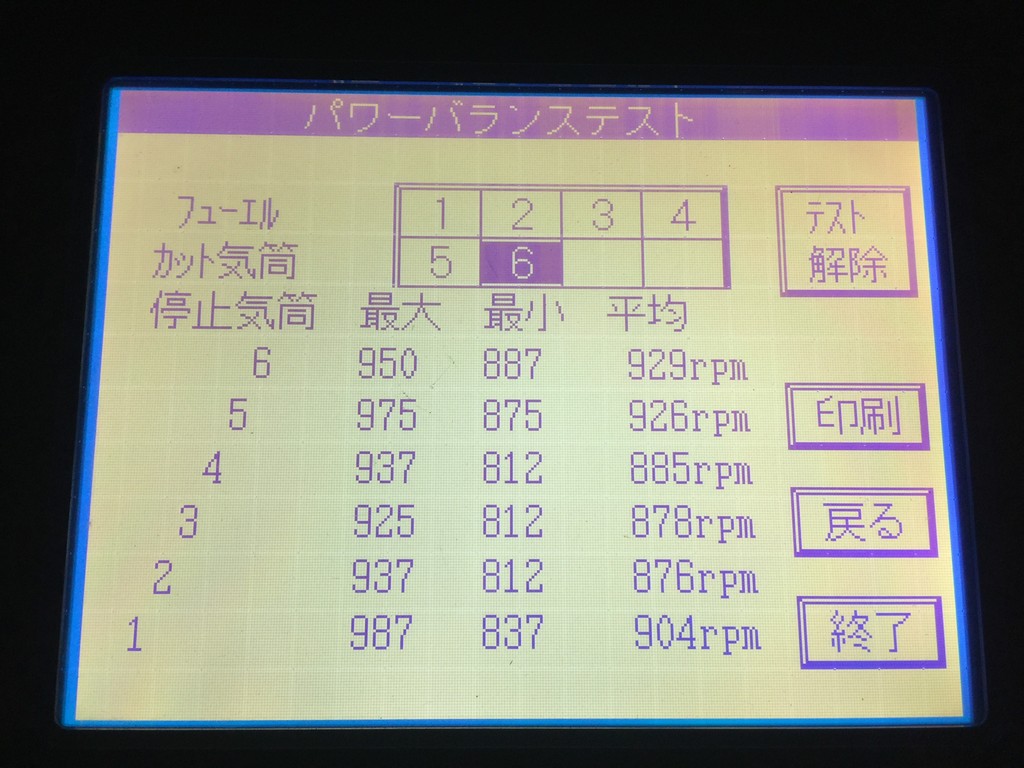 次に、前のエンジンチェックで無駄な作業かもしれませんが、別の診断機に付け直し、各気筒バランスをテストします。